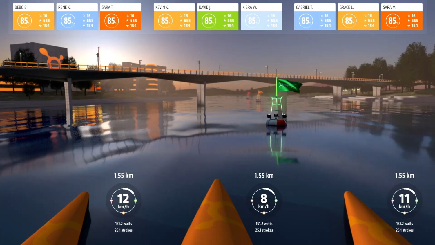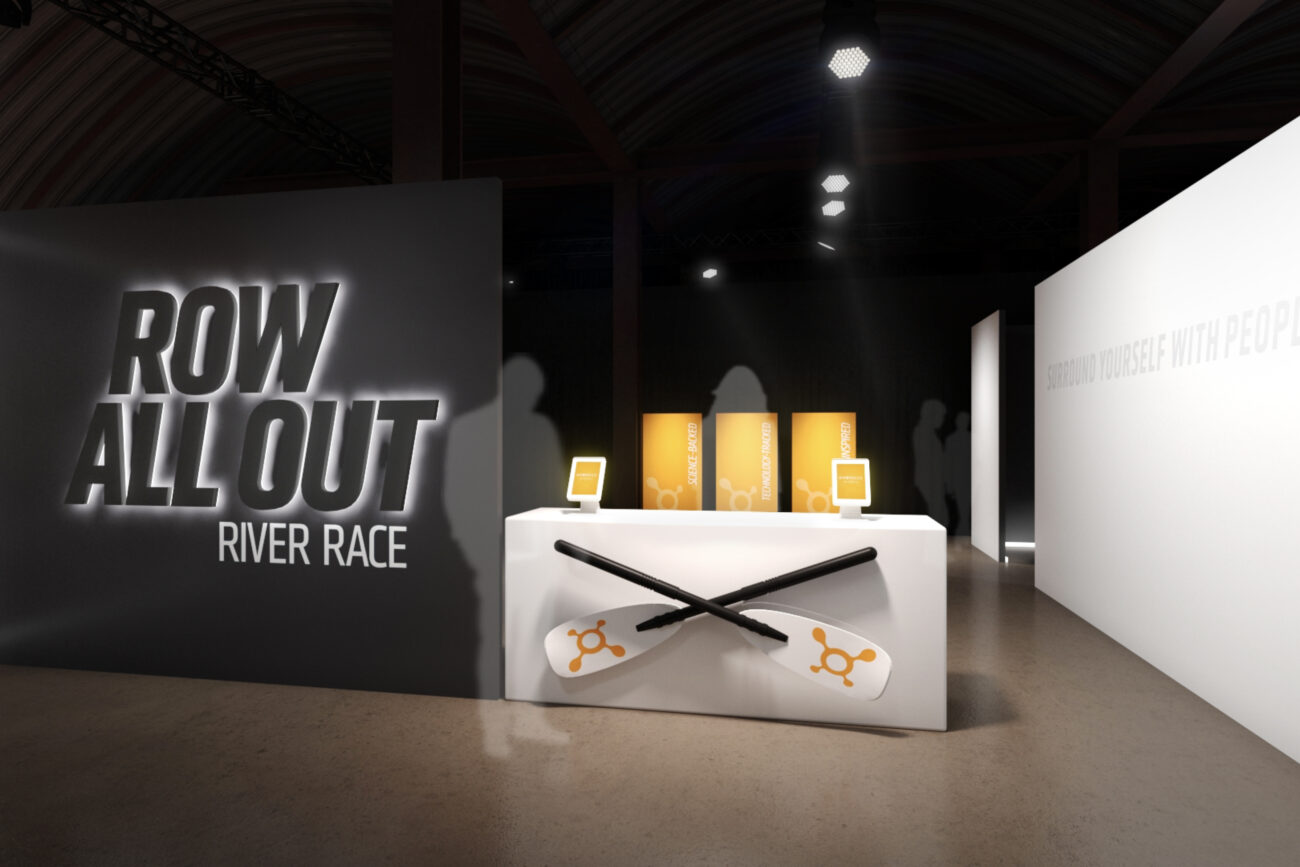 I grew up on video games. So I’m not going to lie, this was one of my favorite parts of the activation. To demonstrate Orangetheory’s signature rower exercises, we created a custom video game where visitors competed in a “Row All Out” race through an Orangtheory Fitness-themed city. We connected their physical rowers to video game technology to deliver this one-of-a-kind interactive experience.